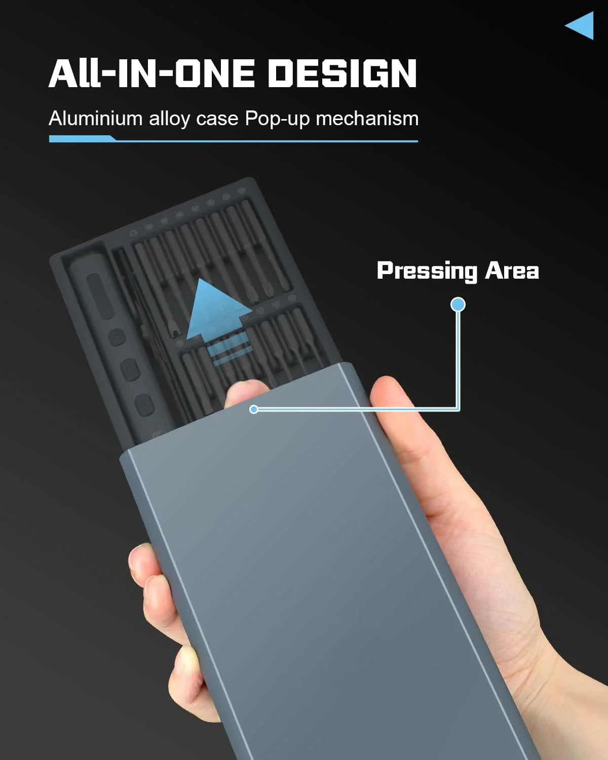 – 64 × Precisionsbits (Phillips, Torx, Triwing, Pentalobe, Hex m.fl.)