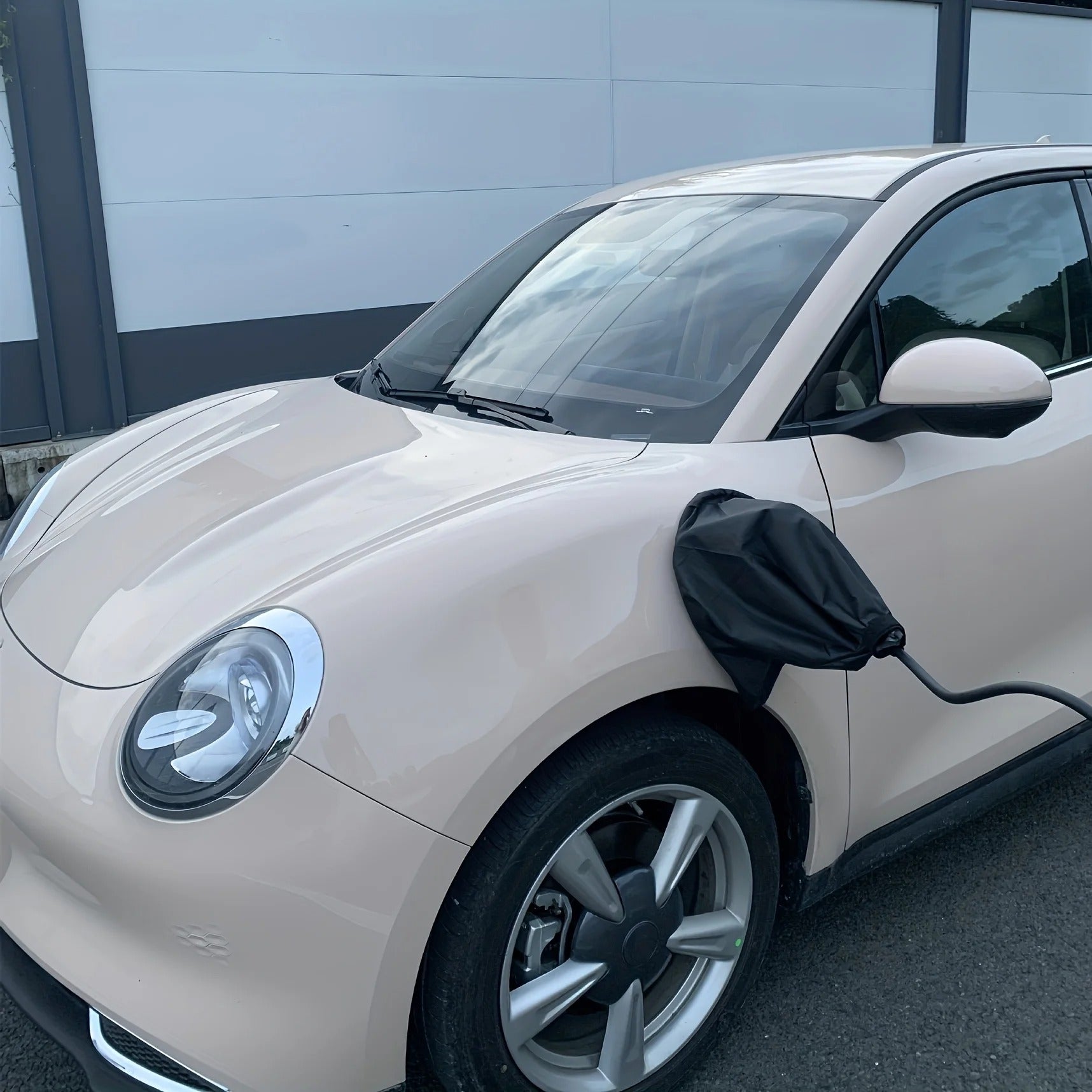 Skyddet placeras enkelt igenom laddningskabeln där den möter bilen och fungerar som ett extra skydd mot frost och vatten.
